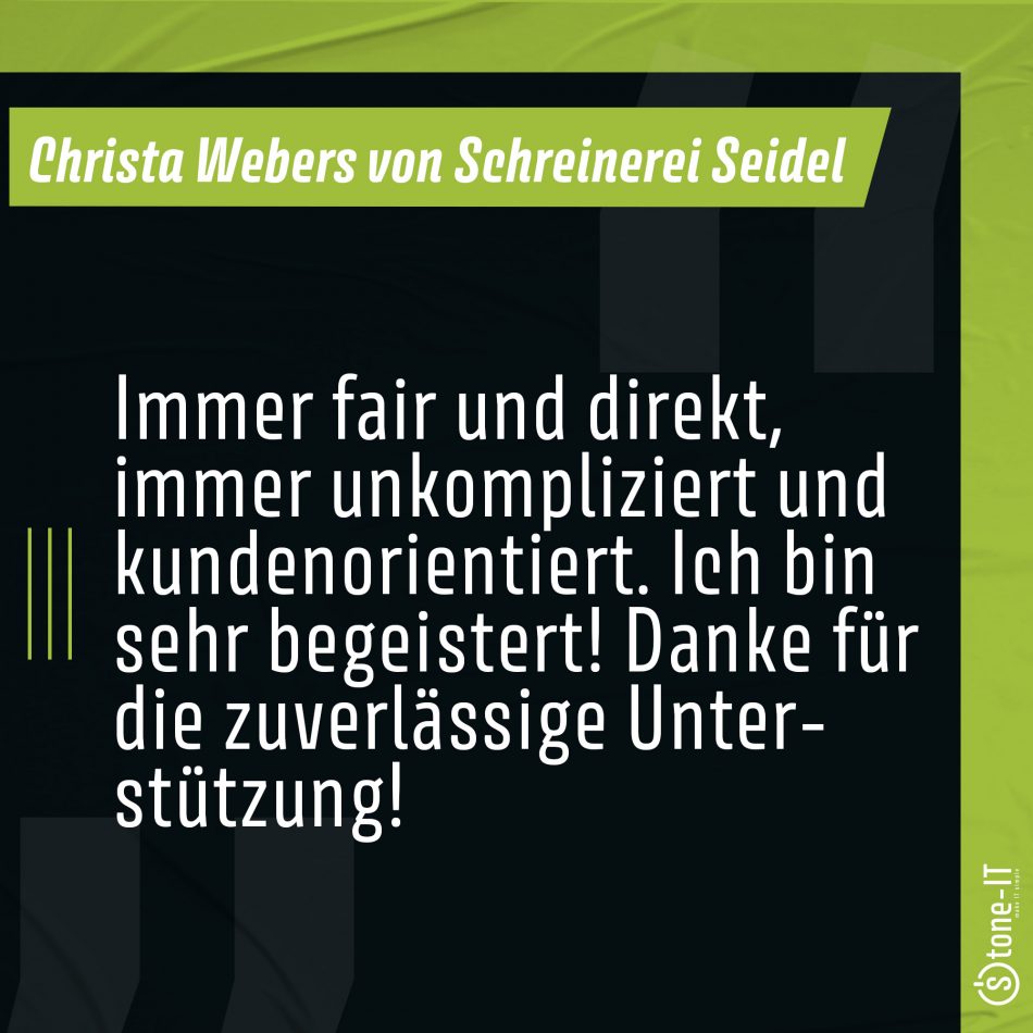 Sei wie Christa, sei zufrieden mit deiner IT: Wir freuen uns immer über Reviews auf Google oder für unsere Website-Referenzen! Also: Haut in die Tasten, solltet ihr schon bei uns Kunde sein oder werdet es und ihr könnt bald mit … Read More